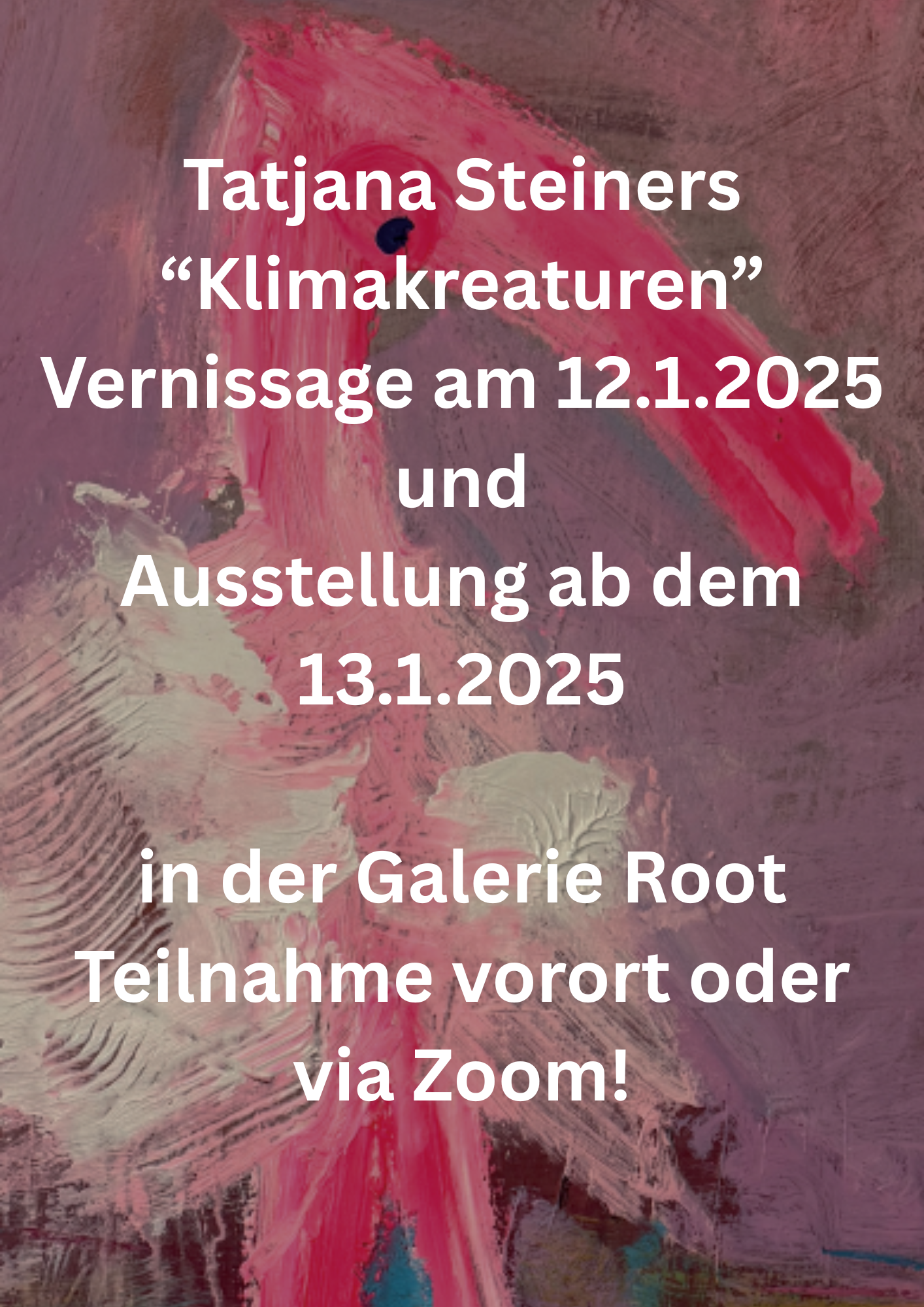 Liebe Freundinnen und Freunde der Akademie für Malerei Berlin, zum Auftakt ins neue Jahr freuen wir uns sehr, Sie in der Galerie ROOT zur Ausstellung von Tatjana Steiner einladen zu dürfen. In der Reihe„Was machen eigentlich die Absolventinnen und Absolventen der AfMB?“ zeigt sie ihre neuen Arbeiten unter dem Titel „Klimakreaturen“. 🎨 Vernissage Montag, 12. Januar 2026 · 18.00 UhrDie […]