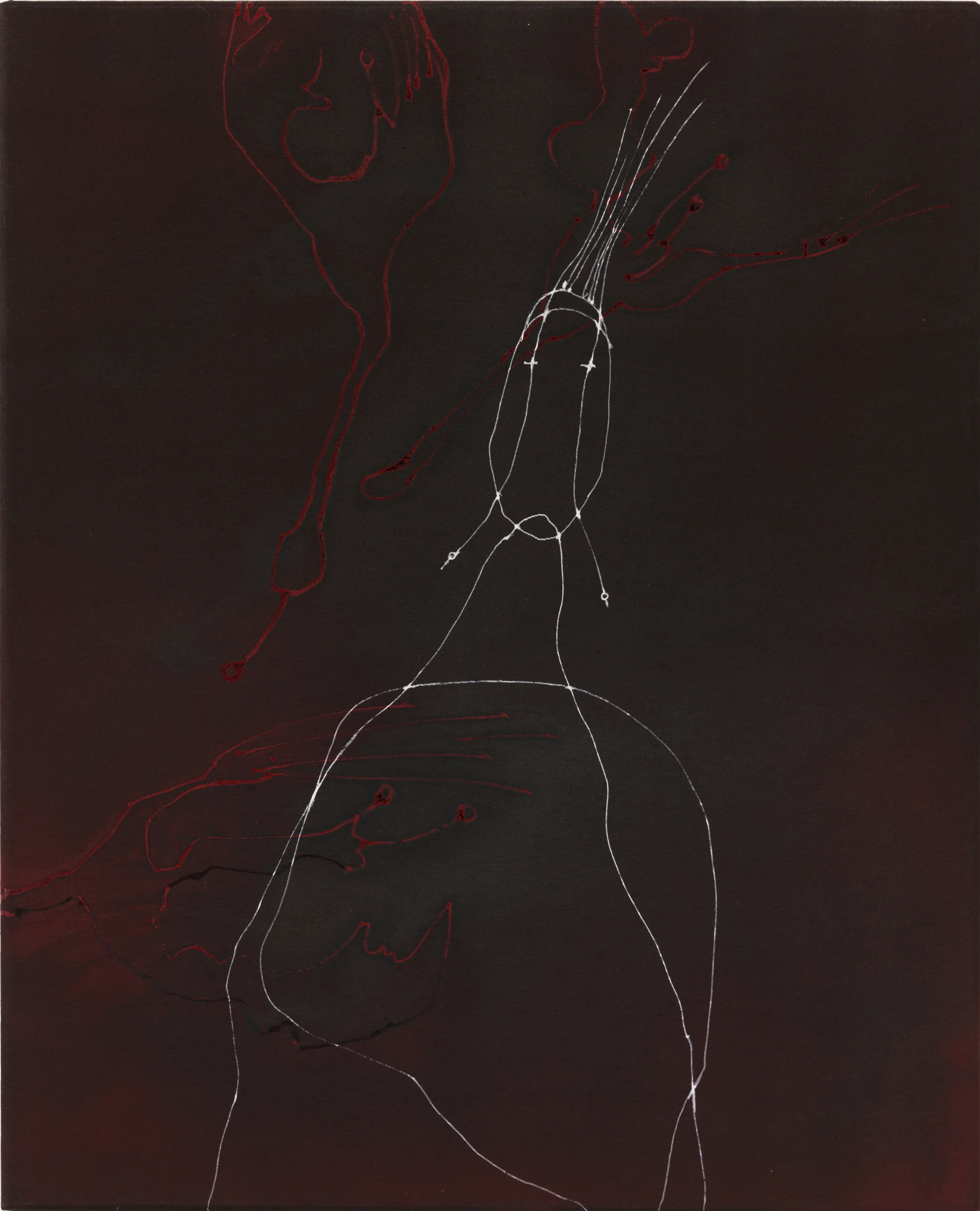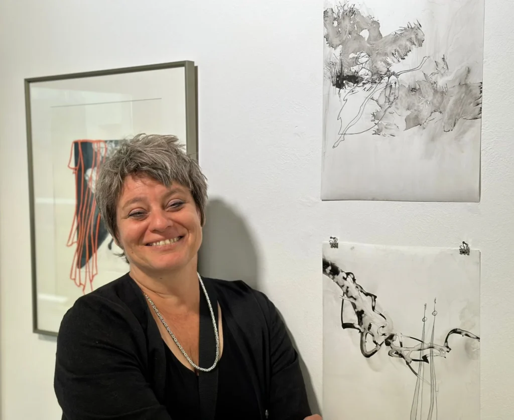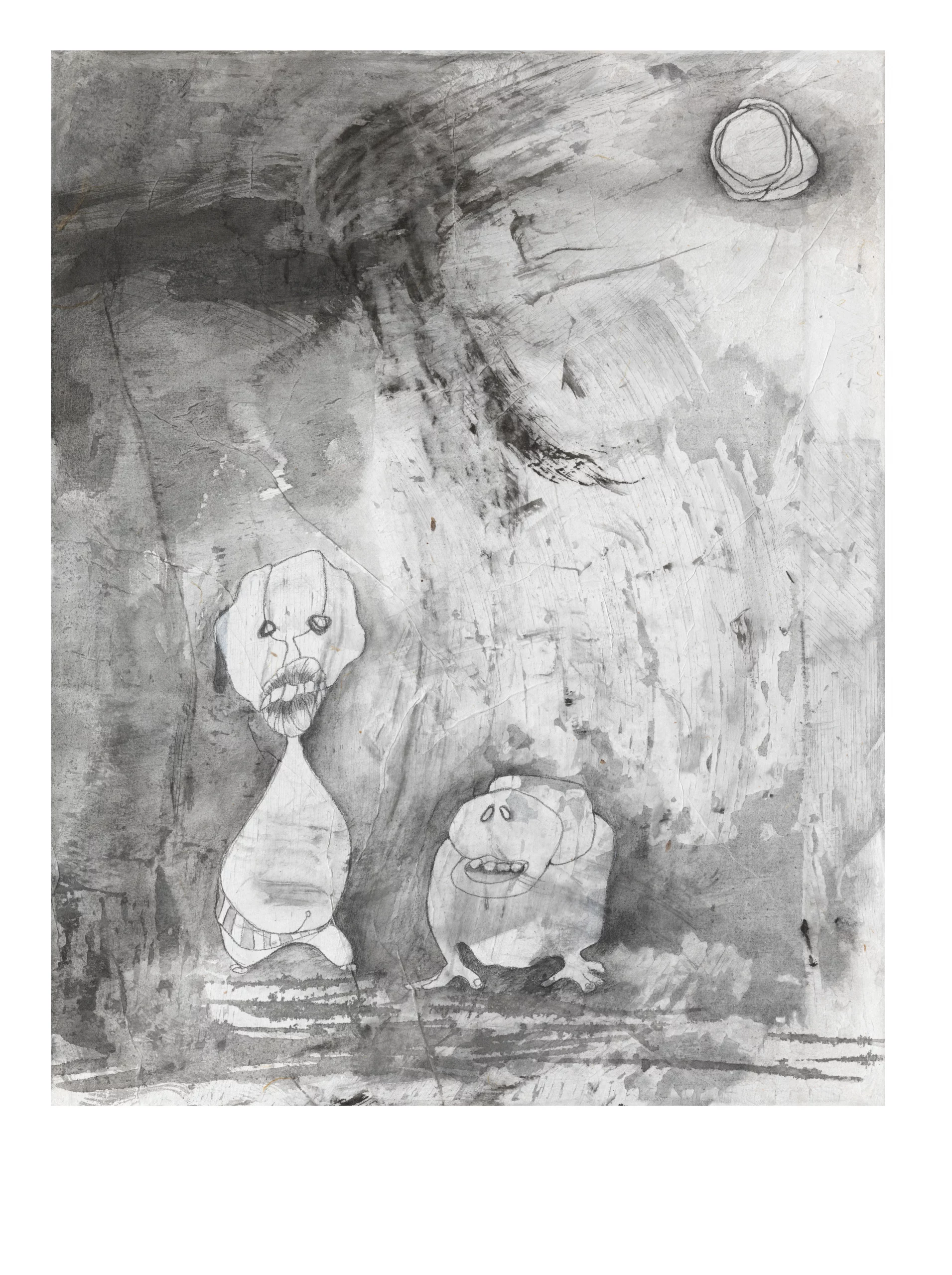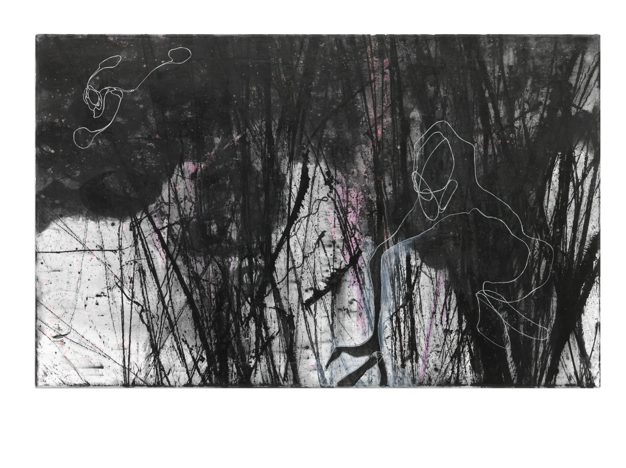 In meinen Bildern entwerfe ich abstrakte Räume aus chinesischer Tusche und Unmengen von Wasser. In dieses Chaos werfe ich automatisch erzeichnete Wesen, die oft nicht in der Lage zu sein scheinen, darin zu bestehen. Ich begreife meine Arbeit als syndetisch, was heißt, dass ich Dinge hinzufüge, ohne zu unterscheiden oder zu analysieren, was wichtig ist. Oder besser. Oder richtig. Dieser uneindeutiger Ansatz ist ein Angebot an den/die Betrachter*in zur eigenen Interpretation oder auch nur zur emotionalen Verbindung mit dem Bild.