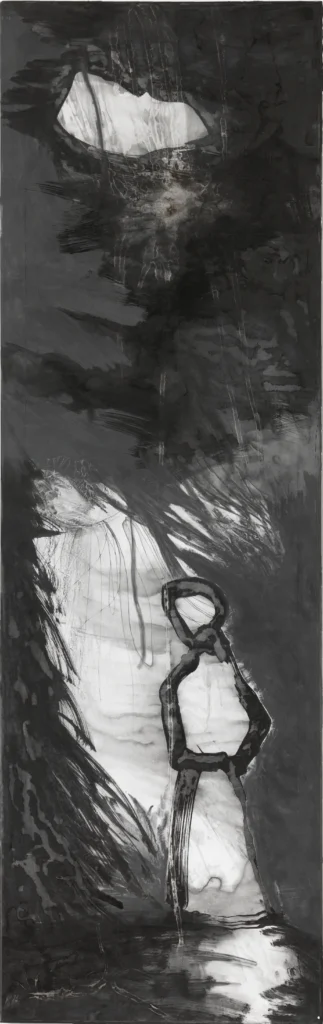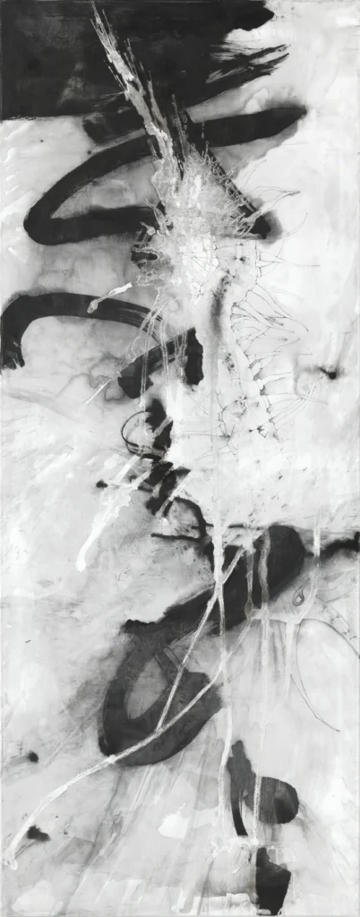 For me, the process of using black ink reflects for me life itself. Once applied, the ink can’t be overpainted. What’s done is done. I can try to embellish or hide something, but it will shine through. As in life, I have to live with it. The large amounts of water I use in the process add an aspect of coincidence and chaos.