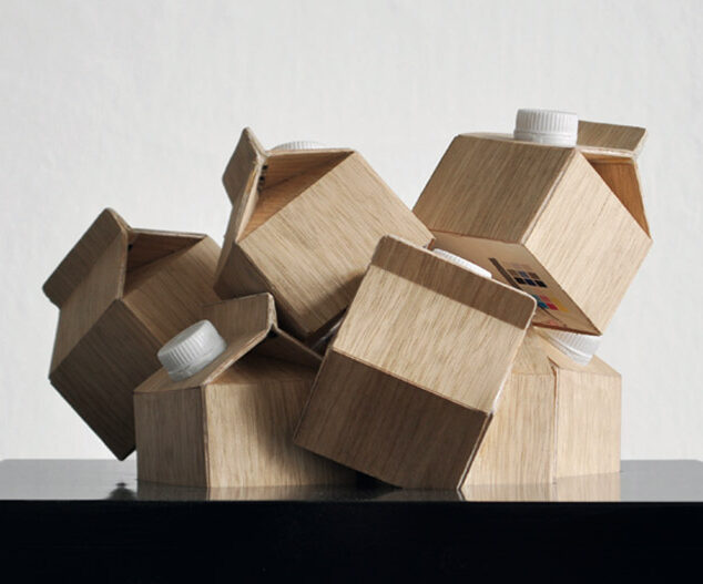 Der Künstler kreiert aus Fundstücken wie gebrauchtem Mobiliar, MDF-Platten, Verpackungskisten und fabrikneuen Inneneinrichtungen neue Gebilde.