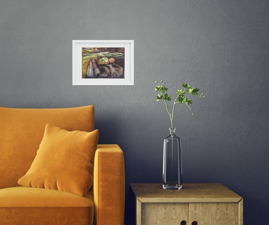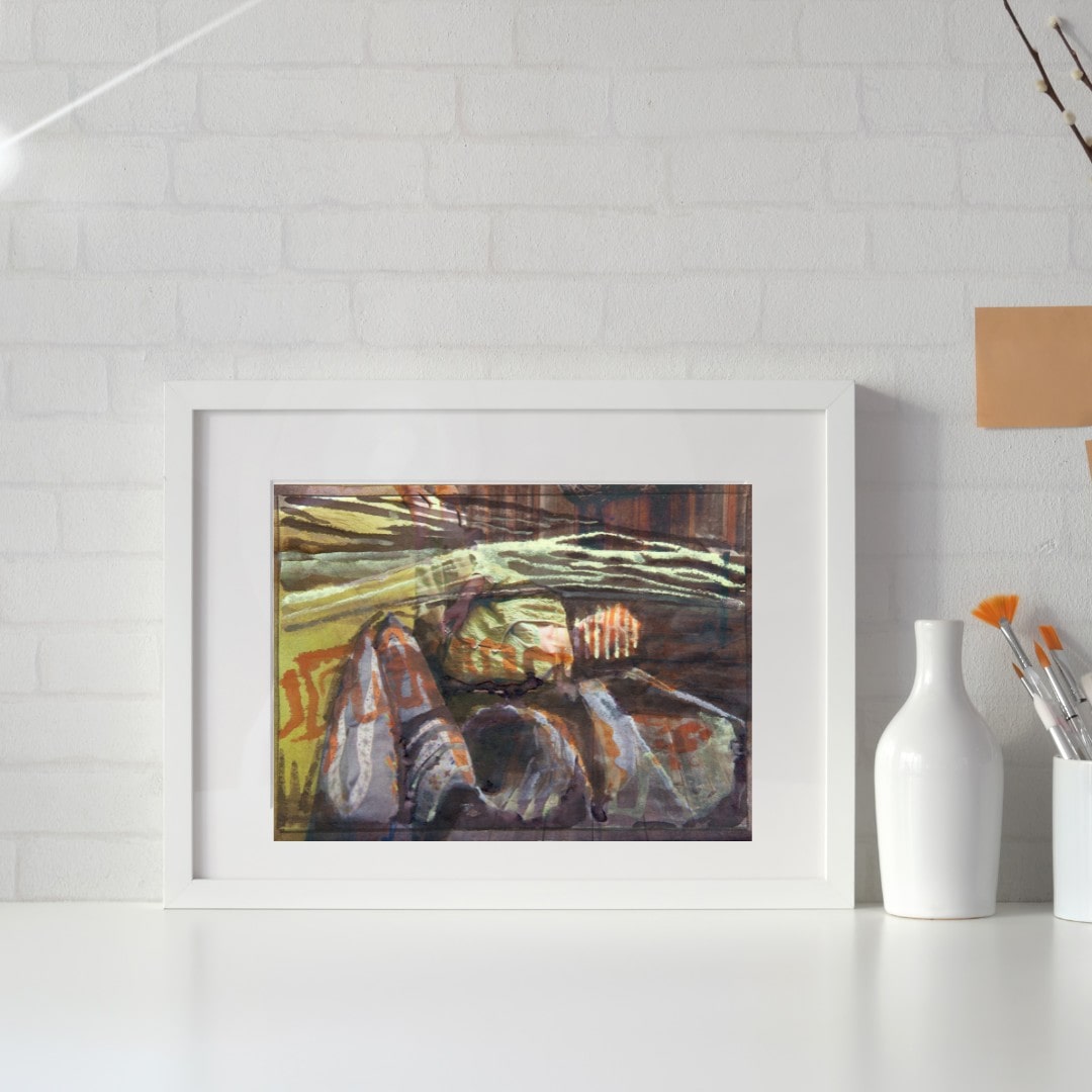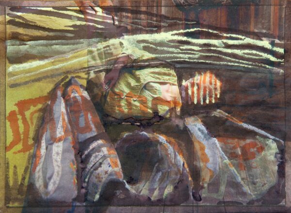 Technik: Tusche, Aquarell auf Zeitschriftenpapier, 20 × 27 cm